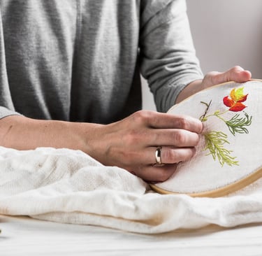 Cuando compras un bordado industrial, estás adquiriendo algo que se repite en miles de hogares. Pero un bordado hecho a mano lleva: