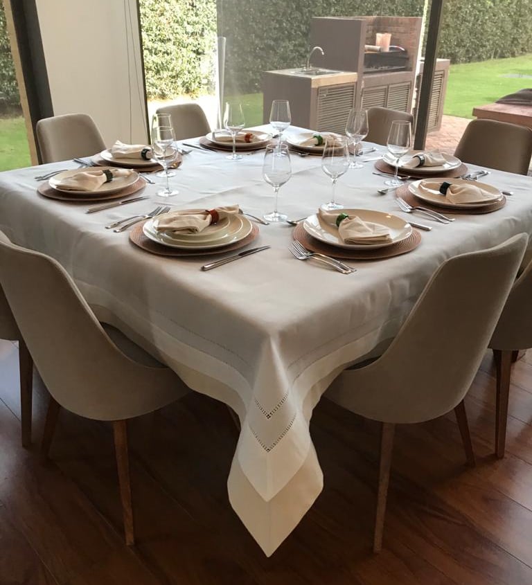 Mide tu mesa y añade entre 20 y 30 cm de caída por lado para un look casual.