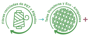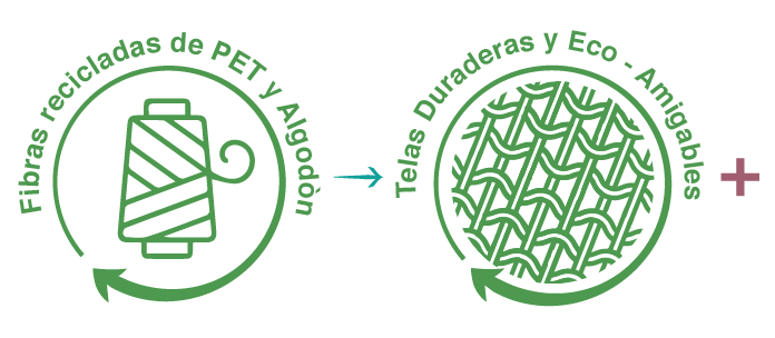 Nos enorgullece adaptarnos a procesos sostenibles al utilizar telas fabricadas con fibras recicladas a partir de algodón recuperado y de poliéster reciclado de envases PET, para la elaboración de nuestros productos, reduciendo así nuestro impacto en el medio ambiente.